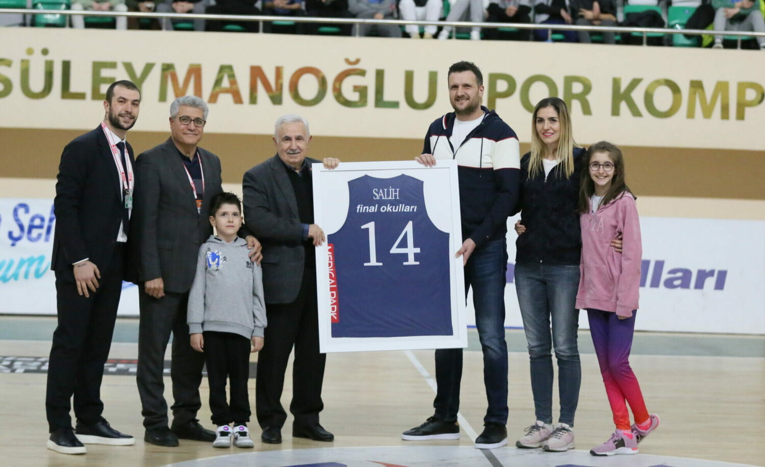 Naim Süleymanoğlu Spor Kompleksi’nde oynanan Final Spor – Akran Gemlik Basketbol karşılaşması öncesinde Final Spor Kulüp Başkanı İhsan Özen ve Final Spor Genel Menajeri Mustafa Kemal Makinacı, eski kaptanları Salih Uğraşan’a isminin yazılı olduğu çerçeveli forma takdim etti.