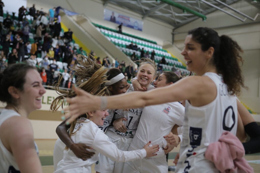 Rakip Avrupa’da önüne geleni deviren, ligde ise bugüne kadar hiç kaybetmemi olan Fenerbahçe Safiport’tu. Kelimeler bu maçı anlatmaya inanın yetersiz kalır. Nefeslerin kesildiği bir maç izledim Naim Süleymanoğlu Spor Kompleksi Salonu’nda. Son 44 saniyeyi anlatmaya kelimeler inanın yetersiz kalır. Gizem Uca’nın dev rakipler arasında ribaund alması. Doyle ile Cuic’in inanılmaz basketleri. Macaulay’ın rakibi yok eden basketi ve ortaya çıkan 84-80’lik inanılmaz galibiyet.