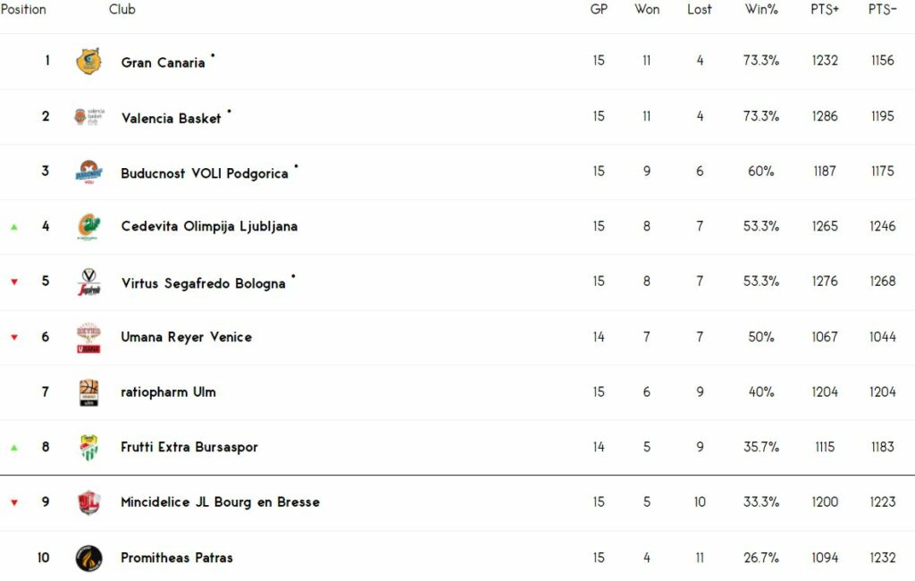 Bursaspor‘un Eurocup B Grubu‘nda oynadığı 14 karşılaşmada 5 galibiyet ve 9 mağlubiyeti bulunuyor.
