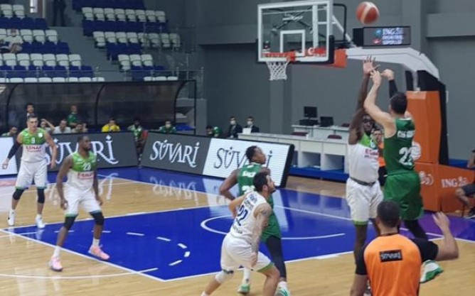 İlk yarıda Oğuz Savaş 13, Branden Frazier 11 sayıyla takımlarının skorerleri oldu. Frutti Extra Bursaspor yüzde 22 (4/18), Frutti Extra Bursaspor yüzde 43 (7/16) ile üçlük kullandı.